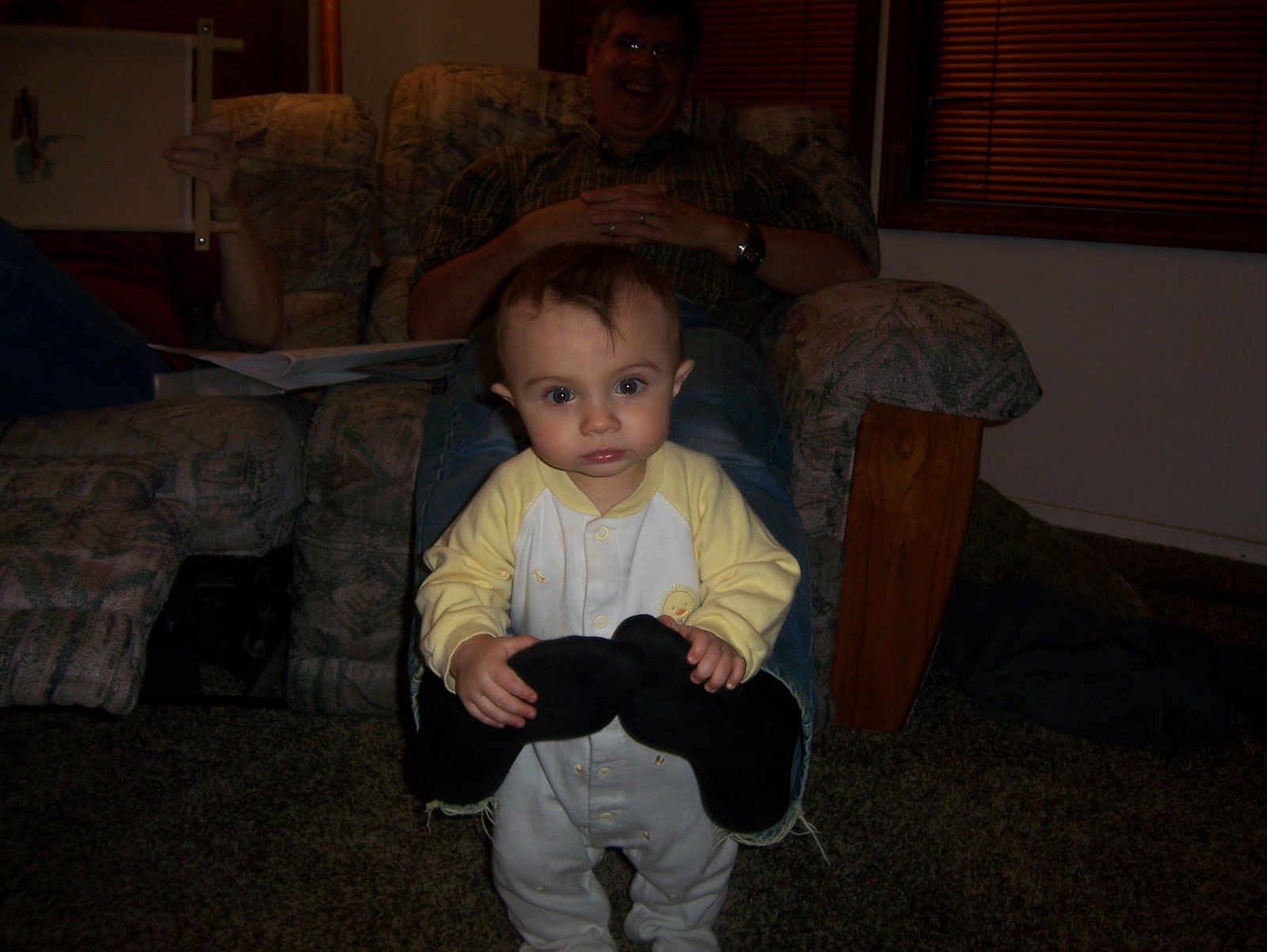 Seriously...Taelin was scooting all over this bed, and then he sees the camera and STOPS what he is doing to smile and laugh at the camera! gotta love my baby:)